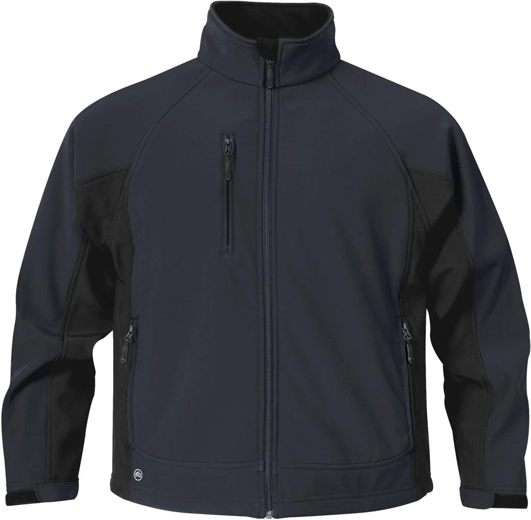 Look your sporting best in this two-tone bonded sport softshell with a microfleece backing for luxurious comfort and smooth mobility. The design includes an interior storm placket and chest pocket, while the water repellent finish effectively keeps the wet out.