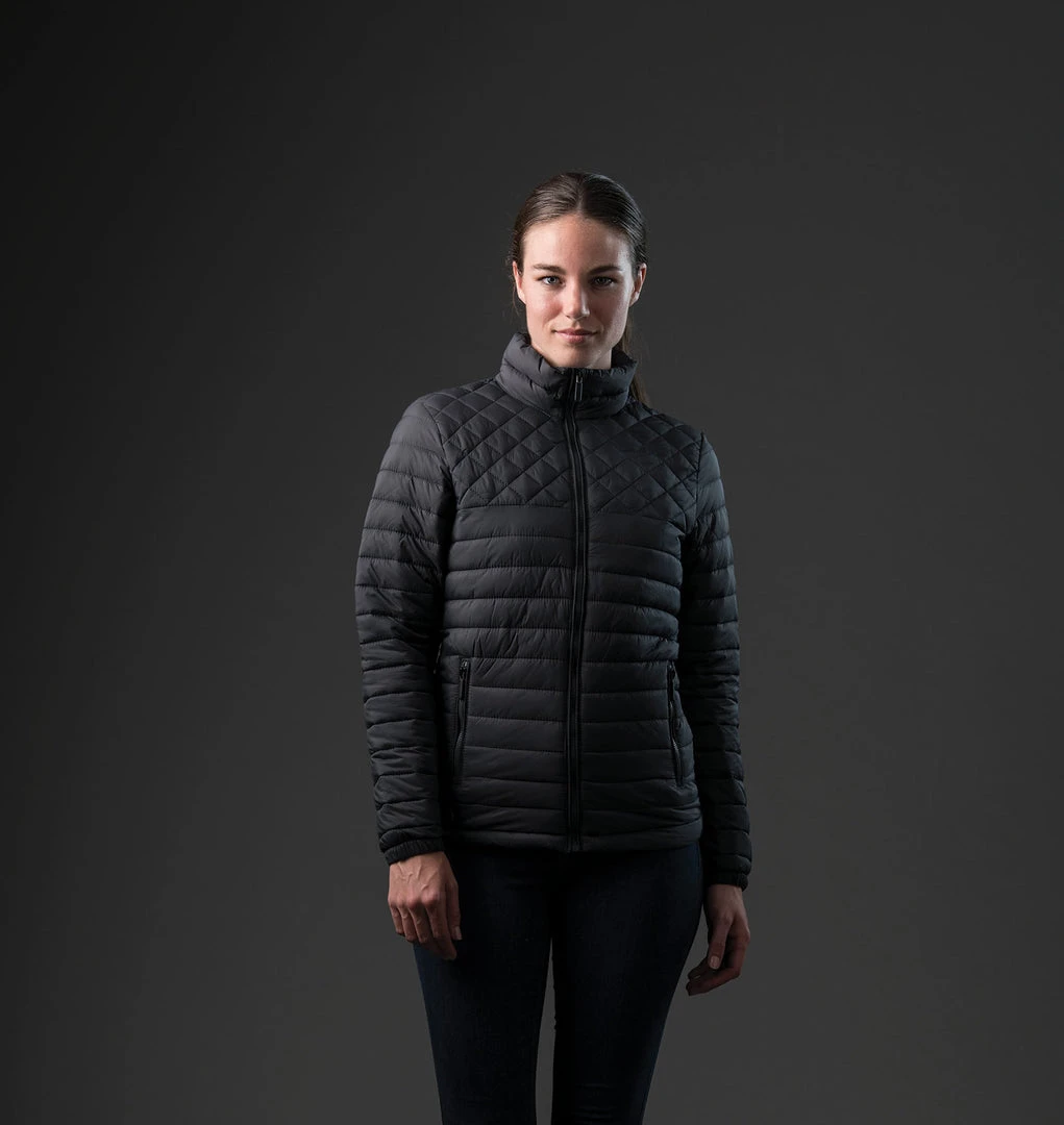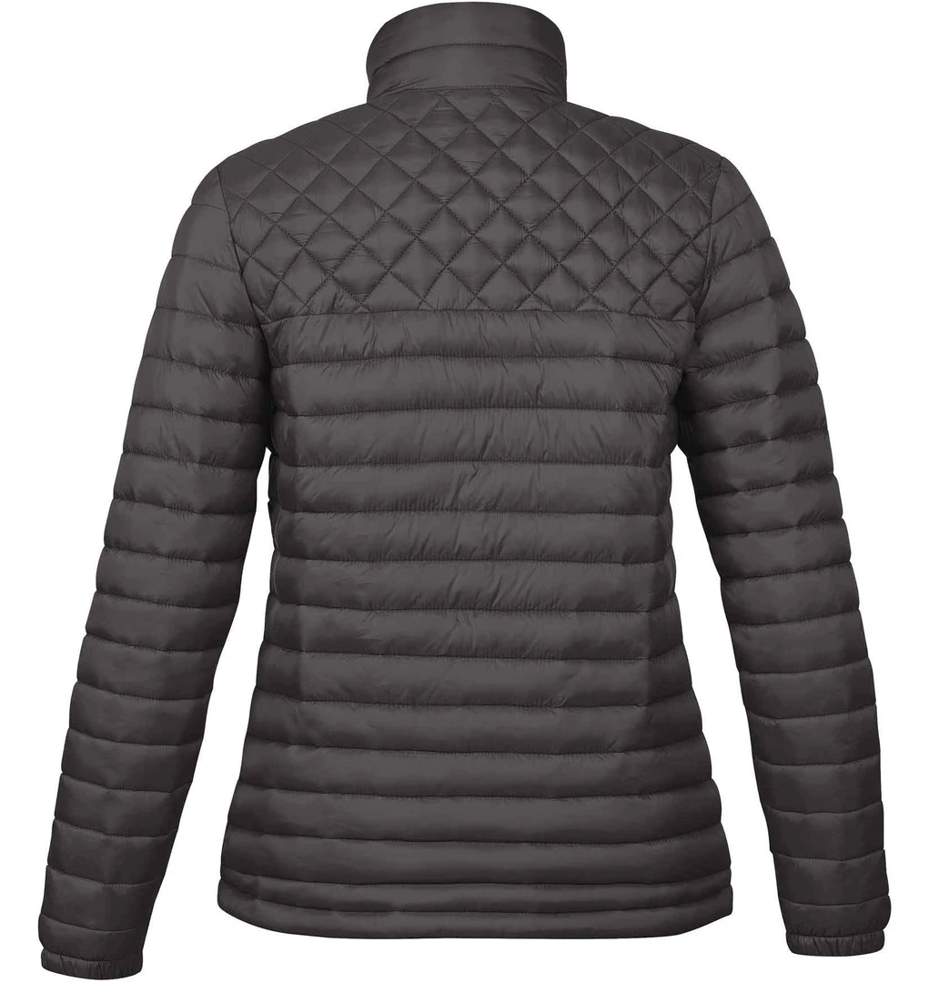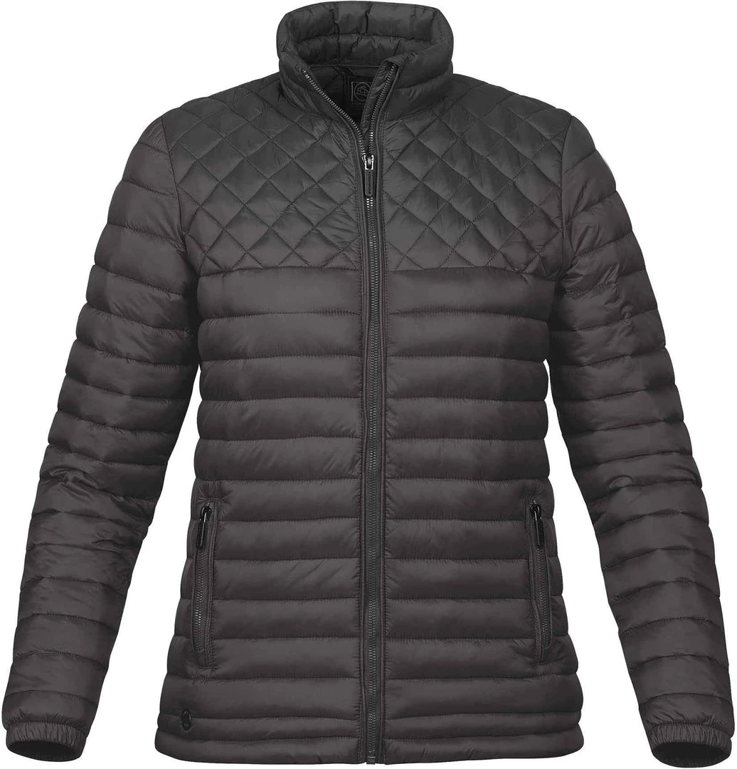 Diamond quilting on the chest and horizontal lines in the body give this insulated shell a fashion-forward, edgy look. A D/W/R water repellent finish and polyester synthetic down fill culminate in a thermal shell that assertively dominates the elements.